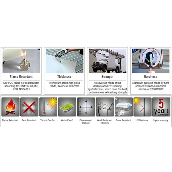 | Adavantage | Fire ratardant , 100 % water proof, UV resistant |
